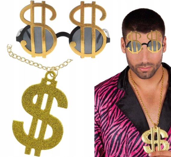 • Okulary dolary naszyjnik dolar Strój rapera gangstera szejka businessmana