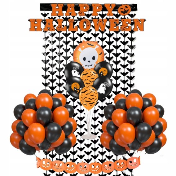 Stojak na balony girlanda dynia dynie kurtyna nietoperze napis Halloween