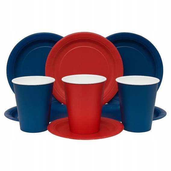 - Kolory: 6 kubeczków i talerzyków bordowych + 6 kubeczków i talerzyków granatowych