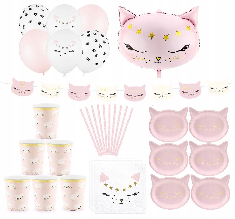Balony kotki dekoracje z kotem kubeczki serwetki