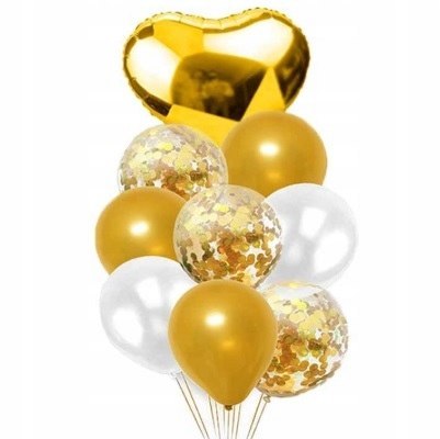 Balony z konfetti serca złote na Hel Ślub Wesele