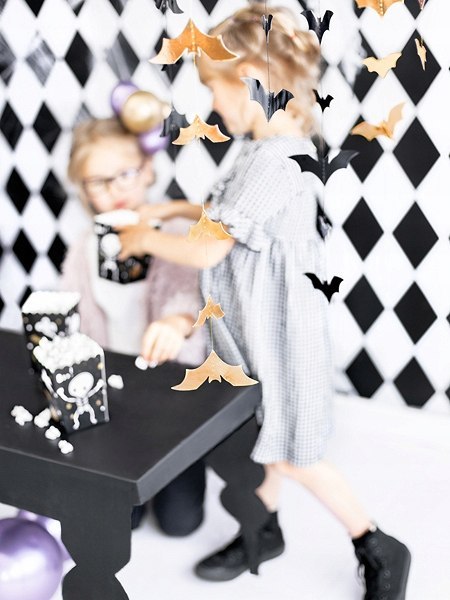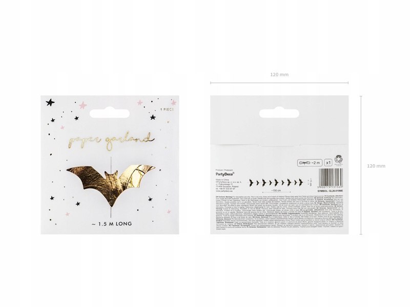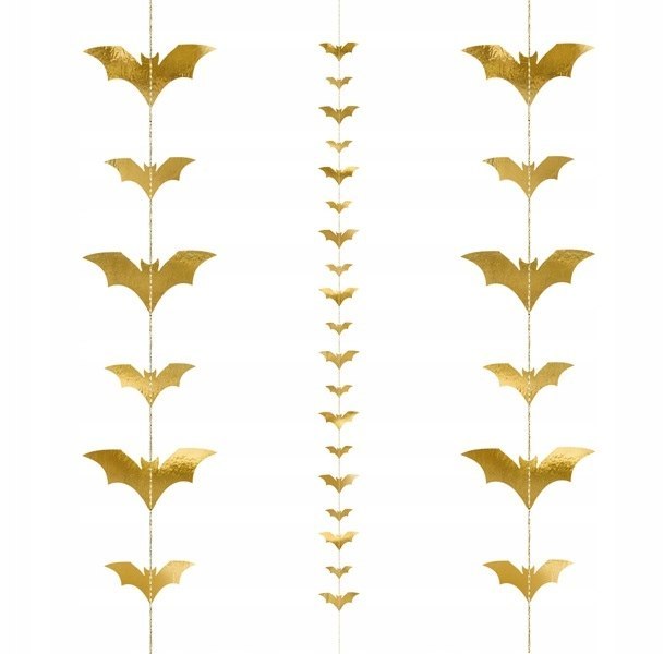 Przeszywana girlanda Nietoperze w kolorze metalicznym złotym, wykonana z papieru,