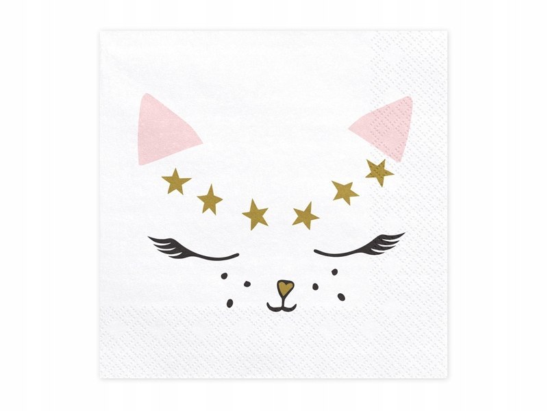 Serwetki papierowe Kotek w kolorze białym z nadrukiem, wymiary po rozłożeniu ok. 33 x 33 cm, wymiary po złożeniu ok. 16,5 x 16,5 cm.