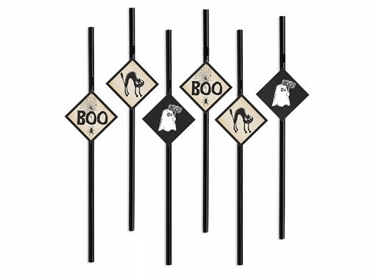 Słomki Boo w kolorze czarnym, długość 24 centymetry. Pakowanie: 1 opakowanie zawiera 6 sztuk.