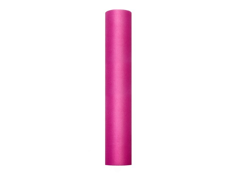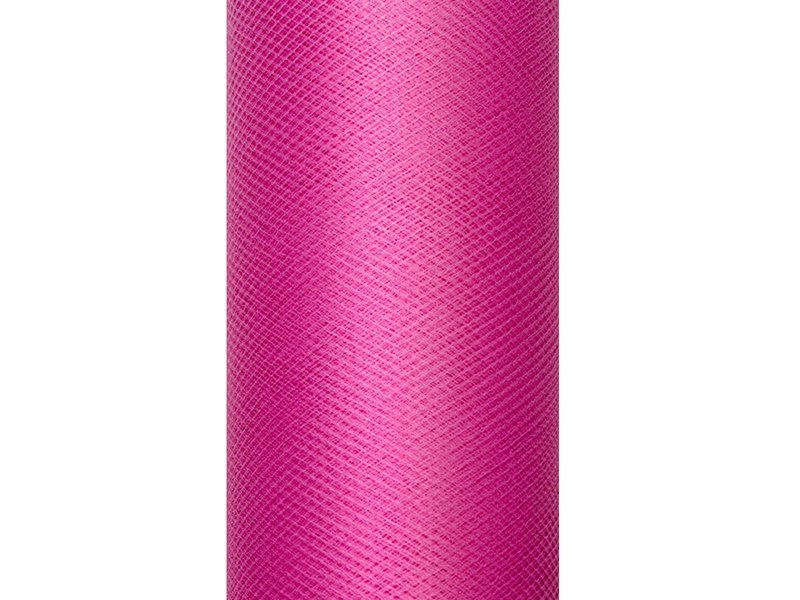 Tiul gładki w kolorze fuksji, na szpulce, wymiary 0,3x9 metrów. Tiul to materiał wszechstronny do dekoracji m.in. kościoła, sali, samochodów, wnętrz lokali. Łatwy w użyciu, ma strukturę drobnej siateczki, po przecięciu nie strzępi się i nie sypie oraz nie wymaga obszycia. Tiul nawinięty jest na rolki i występuje w kilku różnych kolorach, które znajdą Państwo w naszej ofercie. W sprzedaży posiadamy rolki o różnych szerokościach